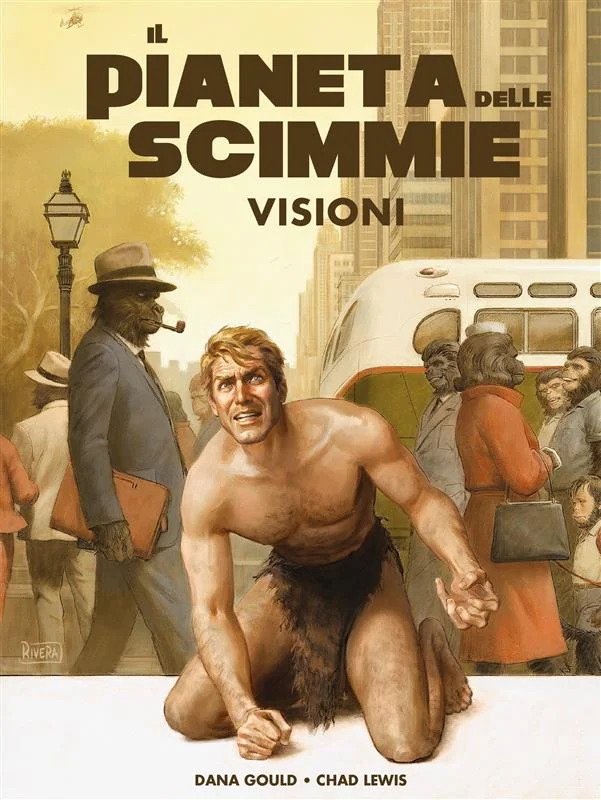 Taylor diventa Thomas e la città delle scimmie non è un raggruppamento di capanne primitive: è invece una frenetica metropoli piena di automobili e grattacieli, testimonianza di una vibrante cultura scimmiesca. In un mondo dove le scimmie indossano abiti moderni, guidano auto moderne e dominano nei talk show televisivi, l’arrivo di un uomo cambierà per sempre il modo in cui primati e umani vedono se stessi. La nuova versione di questo classico utilizza le prove per il make-up e i bozzetti originali del 1966 come punto di partenza. Adattata dal celebre sceneggiatore Dana Gould (I Simpson, Stan Against Evil) e dal disegnatore Chad Lewis (Avengers Origins Presented by Adobe), questa visione premonitrice del futuro dell’umanità è basata sulla sceneggiatura originale di Il Pianeta delle Scimmie scritta da Rod Sterling.