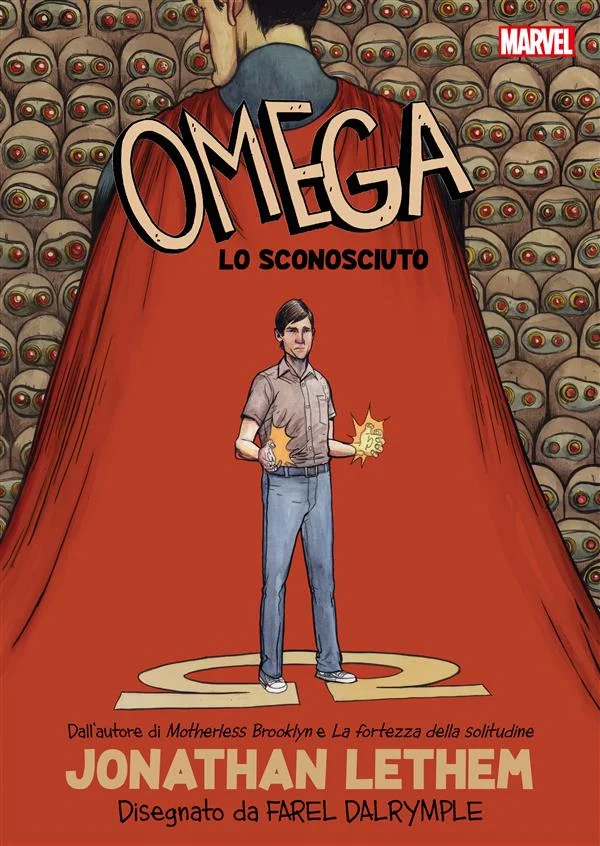 Chi è quello strano adolescente che è stato sbalzato fuori dall’auto che ha ucciso i suoi genitori? Sconosciuto. Chi sono i robot che l’hanno selvaggiamente aggredito nel suo letto d’ospedale? Sconosciuto. Chi è il muto eroe con il mantello che è venuto a salvarlo? Sconosciuto. Che sta succedendo nel retro di quel camioncino dei panini che si aggira per Washington Heights nel nord di Manhattan? Che c’è nel sale che mettono in quegli hamburger? Perché il Professor Greenspun si sta comportando in maniera così strana? Perché il Visone sta combattendo una gigantesca mano su quel tetto? Sconosciuto. Sconosciuto. Tutto questo è sconosciuto. Chi è Omega? Sconosciuto. Almeno finora… Uno dei più grandi romanzieri statunitensi, Jonathan Lethem (Motherless Brooklyn, ora diventato anche un film diretto e interpretato da Edward Norton, La fortezza della solitudine, Un detective selvaggio) collabora con uno dei più premiati e apprezzati disegnatori della scena indipendente USA, Farel Dalrymple (Pop Gun War), per realizzare una delle storie più insolite, affascinanti, commuoventi e surreali che la Marvel Comics abbia mai prodotto. Rivisitando la serie classica di Omega: Lo Sconosciuto prodotta negli anni Settanta da Steve Gerber, Lethem e Dalrymple firmano un classico moderno a fumetti adatto per tutte le età.