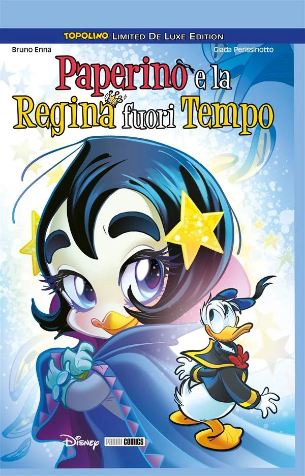 Reginella, la piccola papera aliena sovrana di un regno subacqueo, creata nel 1972 da due grandi Maestri Disney come Rodolfo Cimino e Giorgio Cavazzano, torna per stupirci ancora con la sua dolcezza nella mini saga romantico-avventurosa Paperino e la regina fuori tempo, scritta da Bruno Enna e disegnata da Giada Perissinotto per il magazine Topolino. Attraverso una rivisitazione molto ben riuscita del personaggio, i due autori ci regalano un nuovo capitolo della storia di Reginella e del suo legame speciale con Paperino, rendendola più moderna sia da un punto di vista narrativo sia da un punto di vista grafi co, senza mai snaturare le sue peculiarità. La storia a fumetti ripubblicata interamente in questo volume è arricchita da contenuti inediti.