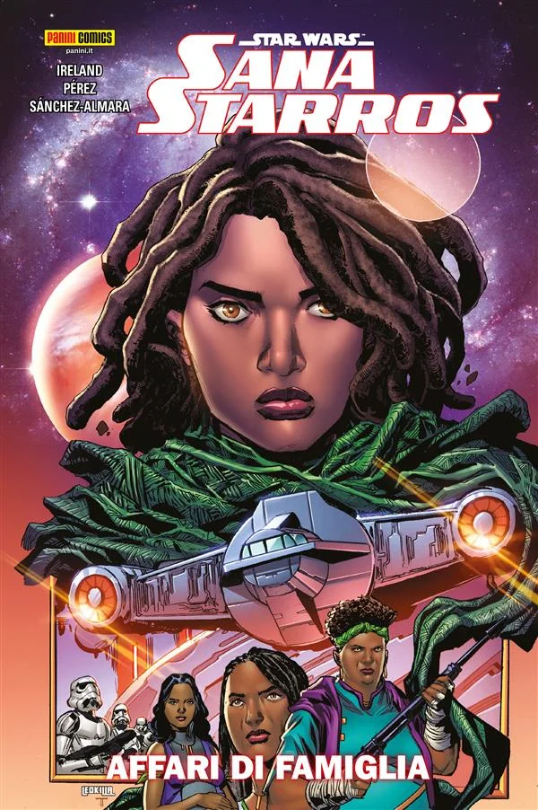 SANA NELLA SUA PRIMA AVVENTURA DA PROTAGONISTA! Fresca di una serie di delusioni, Sana torna a casa della sua famiglia per una piccola vacanza. Ma il tempo insieme è tutt’altro che rilassante per una contrabbandiera e la sua famiglia di fuorilegge, soprattutto quando degli assaltatori Imperiali fanno irruzione durante la cena! La famiglia Starros è davanti alla più grande prova mai affrontata per preservare un segreto del passato da sempre custodito gelosamente. Ma in che maniera è coinvolta Deva Lompop, una delle cacciatrici di taglie più letali della galassia? Le risposte attendono a bordo di un cacciatorpediniere Imperiale! [CONTIENE: SANA STARROS (2023) #1-5.]